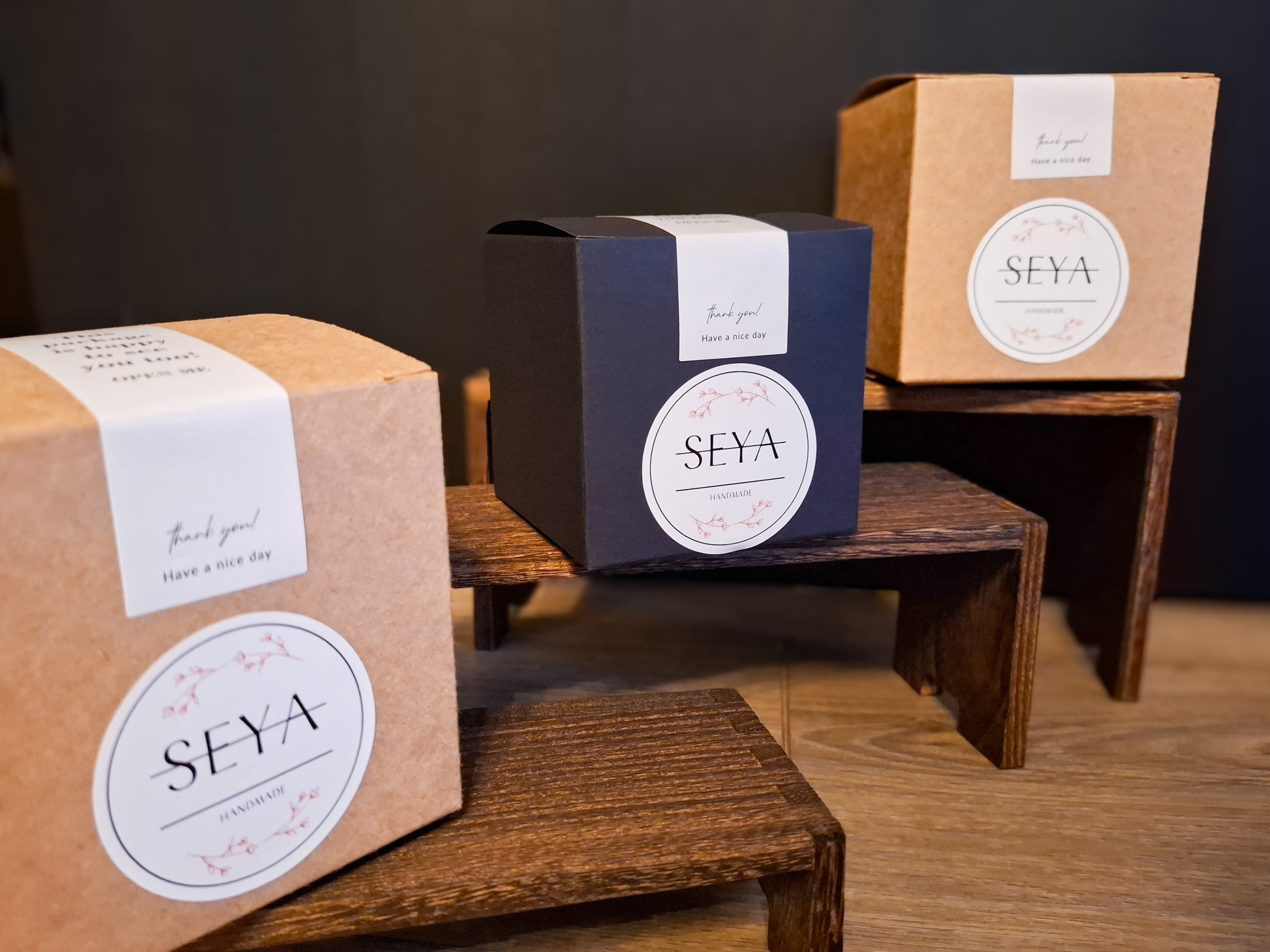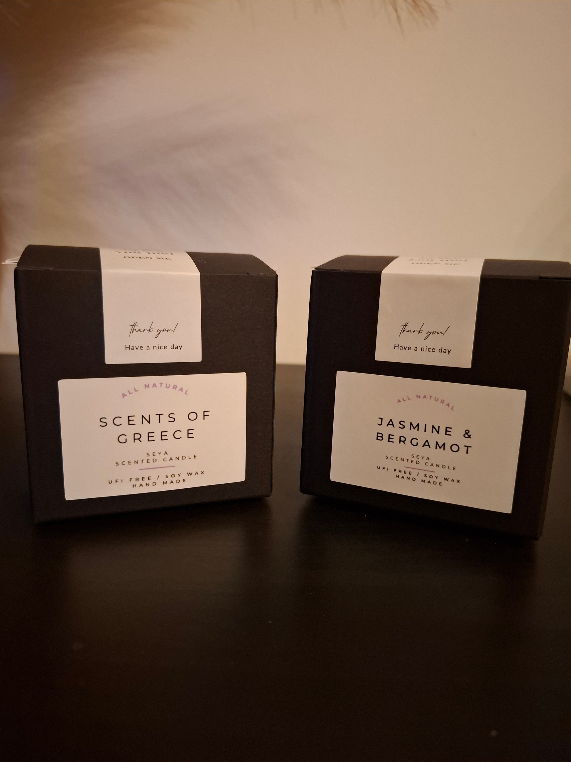 Voor een kleine prijs wordt elke kaars (tot en met 10 cm breedte) apart ingepakt in een mooi doosje, in het zwart, wit of bruin.