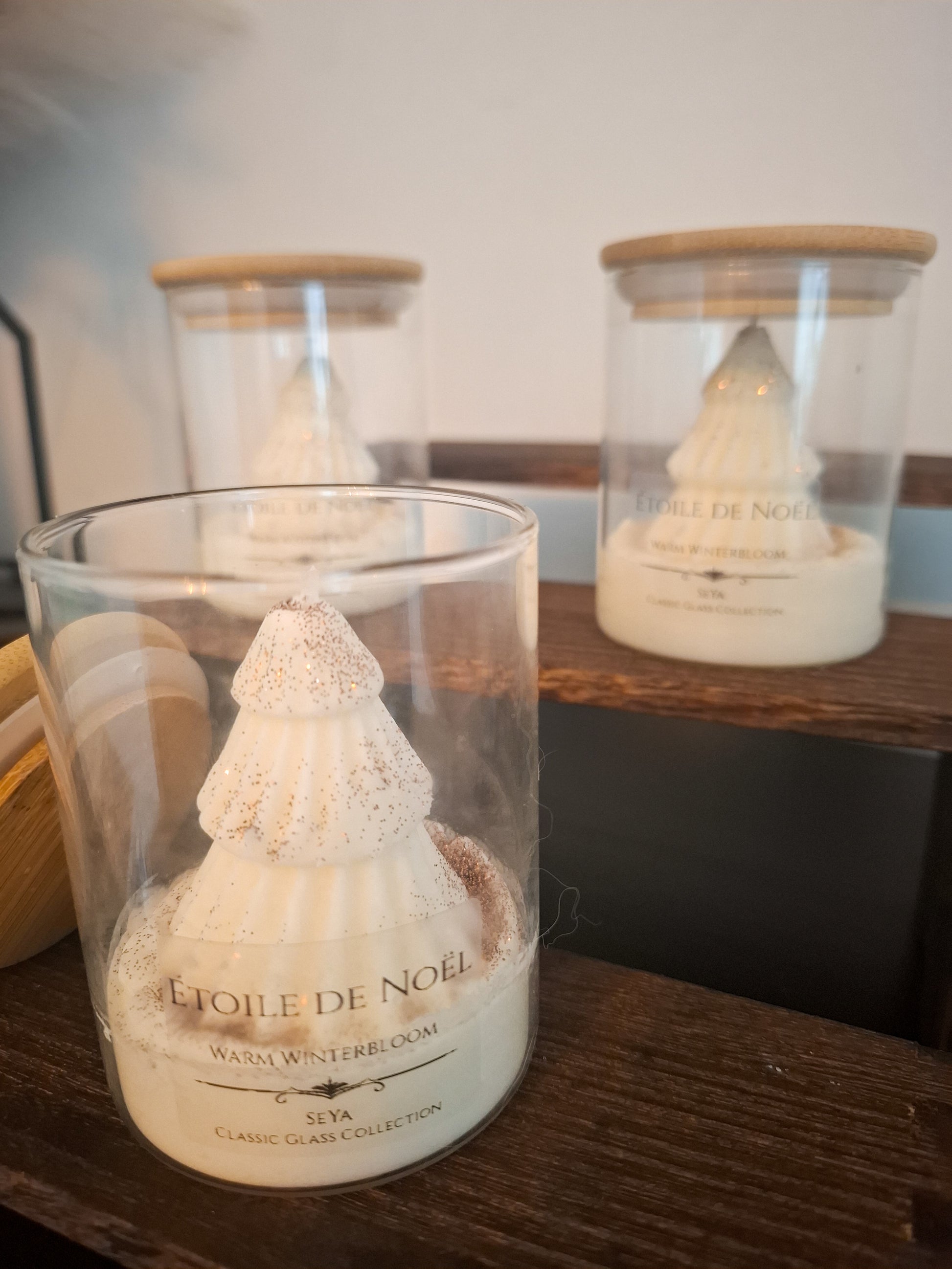 Laat je betoveren door Etoile de Noël– een handgemaakte sojakaars die de serene schoonheid van een winterlandschap tot leven brengt.